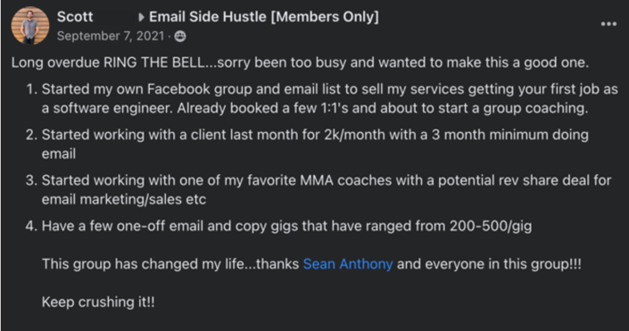 With this bank vault of training, templates, formulas, and examples at your fingertips... I’ve watched brand new Email Rainmakers snag $1k-$5k/mo clients in a few weeks.